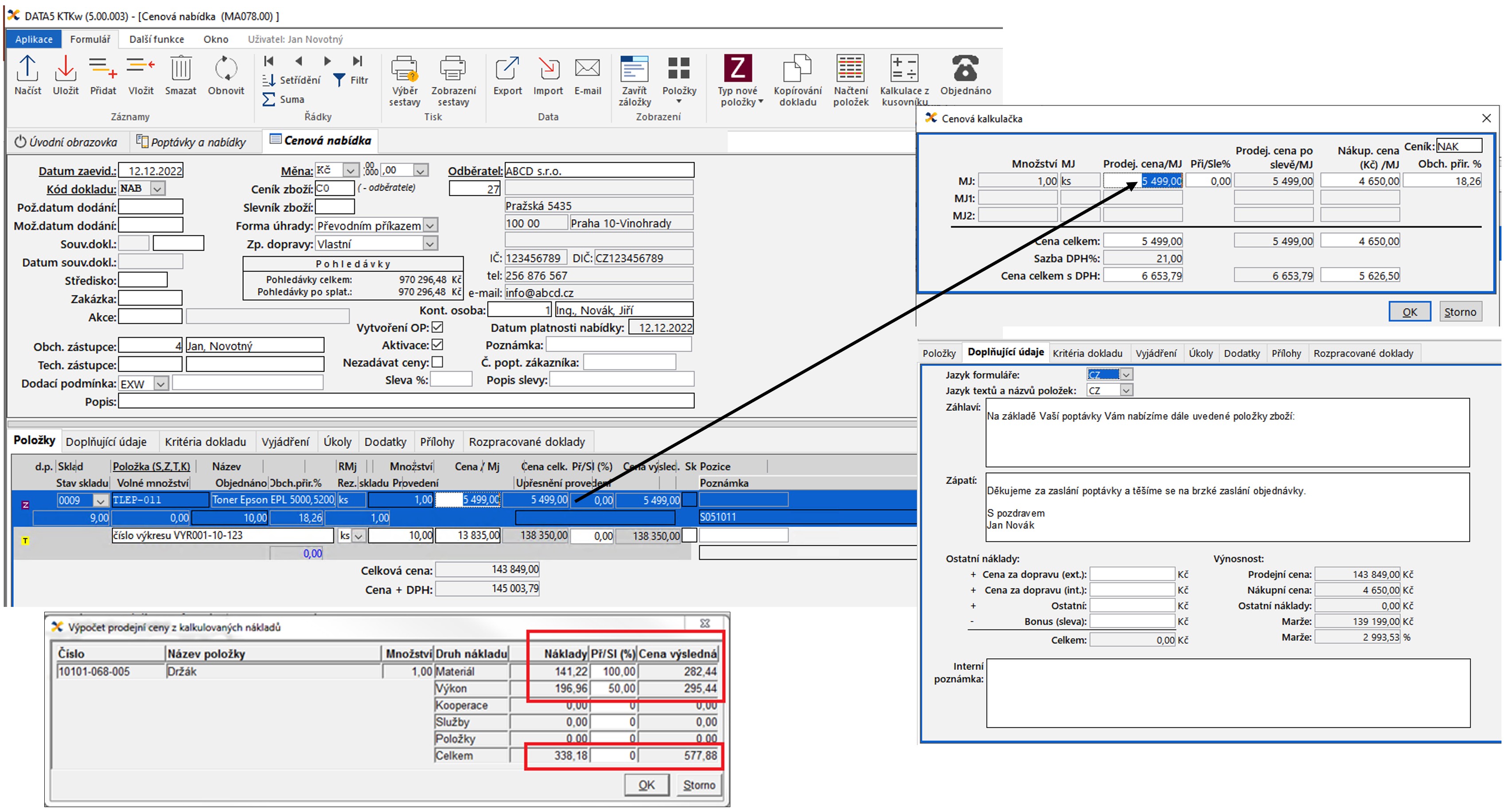 - Variabilní cenové nabídky: Snadné vytváření více variant nabídek z jedné poptávky, což zákazníkovi umožní vybrat si optimální řešení.